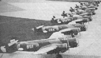 Zeven T-V bommnwerpers bij oplevering in 1938 opSchiphol