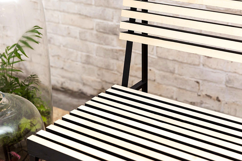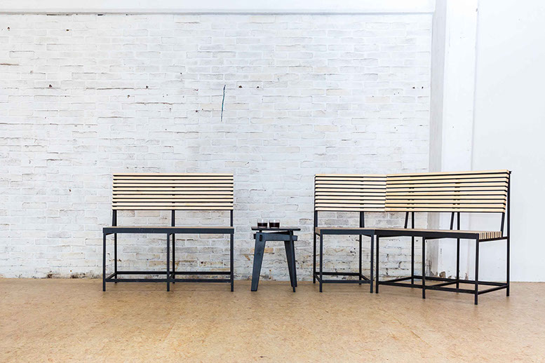 street furniture. Made from galvanized powder coaded steel and Accoya wood.