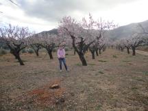 Foto links; We zijn in de Jalon vallei met vruchtbare lava grond waar de amandel bomen volop in bloei staan. |