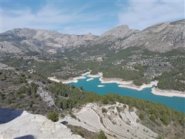 Foto links; .In de Jalon vallei een wandeling maken. De amandel bomen bloeien en de sinasappelen zijn klaar. |
