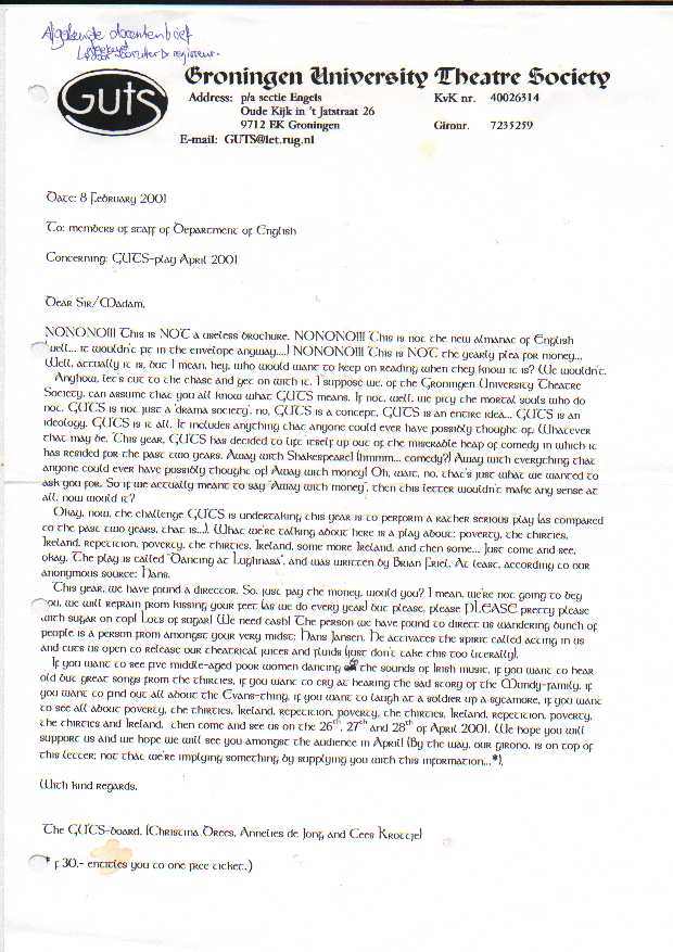 OF 2000-2001 PRODUCTION "DANCING AT LUGHNASA"