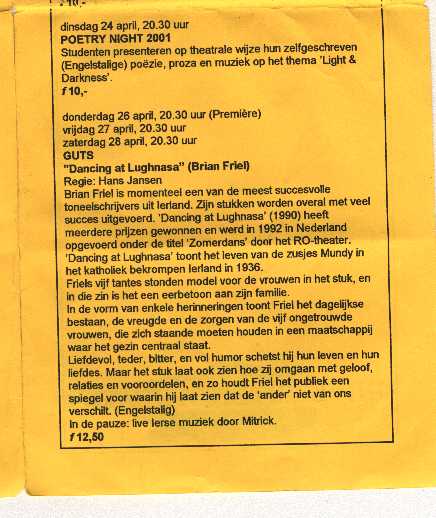 OF 2000-2001 PRODUCTION "DANCING AT LUGHNASA"