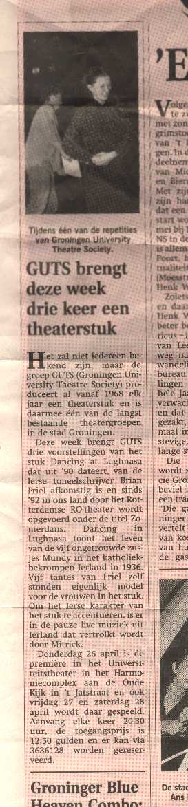 ARTICLE "NIEUWSBLAD VAN HET NOORDEN", WEDNESDAY , 25 APRIL 2001