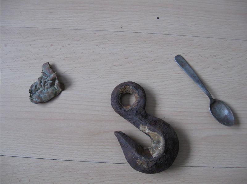 We hebben ook nog gezocht naar dingen met de metaaldetector want er zijn nog zoveel spullen niet gevonden, er is tijdens de invasie heel wat kwijt geraakt. We hebben niet veel gevonden maar wel wat zoals een lepeltje, zag er nog aardig mooi uit. Een stuk verschrompeld koper ik denk zelf dat het een bomscherf is. Een haak kwam als een grote klomp roest uit de grond maar toen ik hem een paar keer liet vallen kwam er toch een mooie haak uit. Er valt nog veel meer te vinden ook dingen waar van je niet weet wat het is door dat het al meer dan 50 jaar onder de grond ligt. In veel museums lagen ook gevonden dingen van de invasie die nog regelematig aanspoelen doordat zoveel is kwijtgeraakt..
