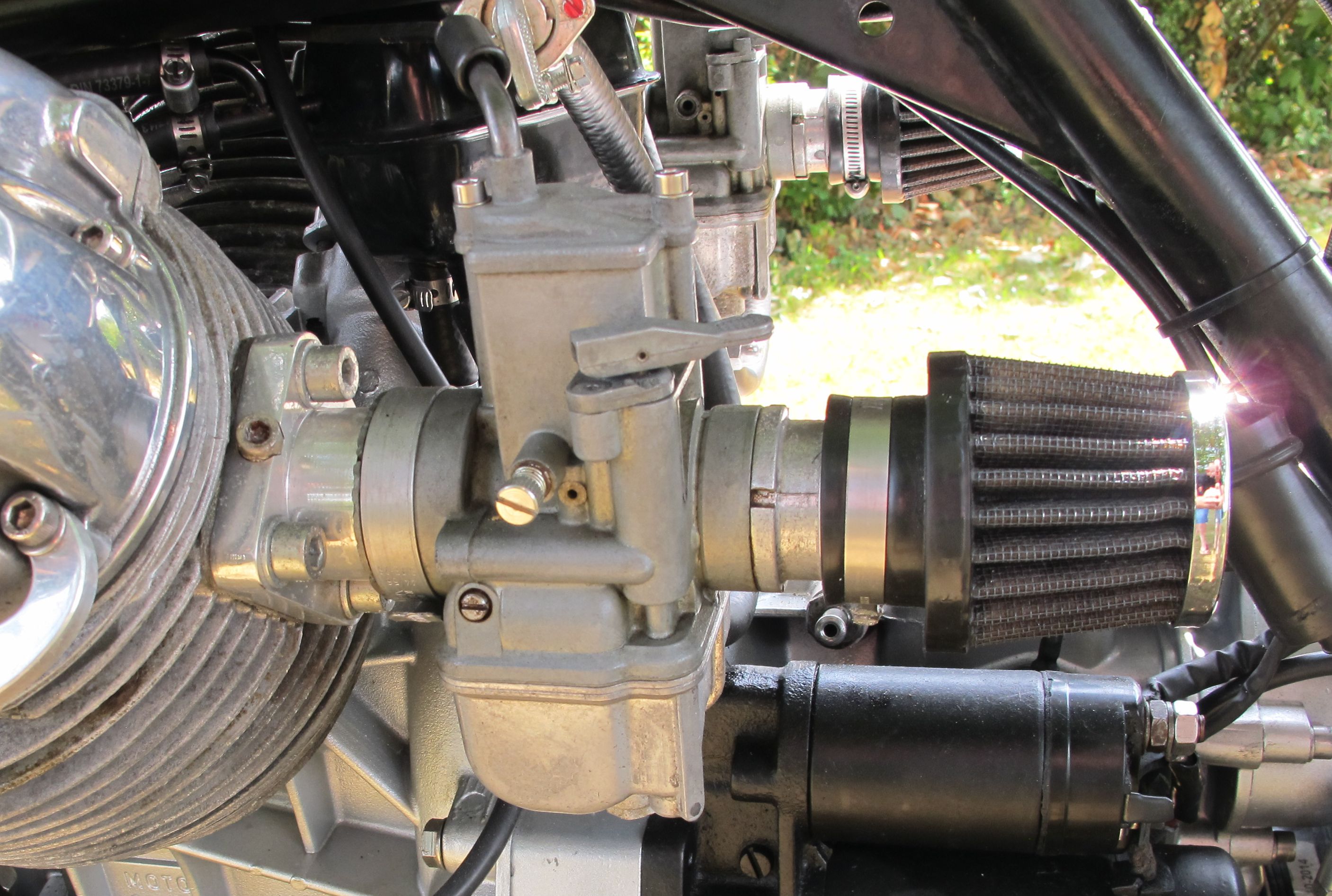 De oorspronkelijke VHB30 carburateurs zijn gebruikt na te zijn gereviseerd. De inlaatsspruitstukken zijn vervangen door handgemaakte rechte exemplaren zodat de Dell´Orto carburateurs visueel goed tot hun recht komen. De luchtfilters zijn van K&N.