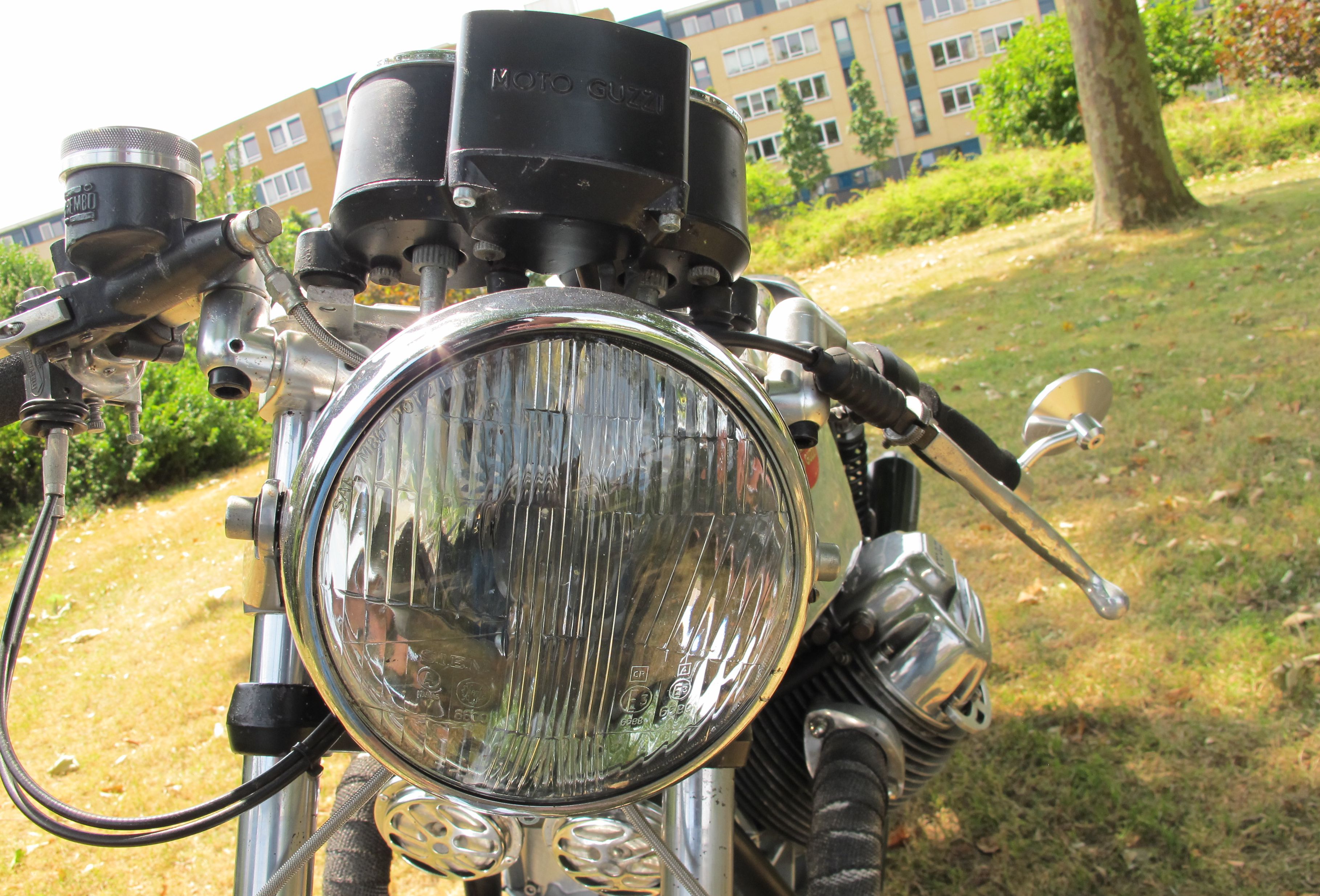 Het stuur is vervangen door Tommaselli clip-ons direct op de voorvorkpoten. Een originele Tommaselli duplex gashendel is gemonteerd. Kroonplaat is vervangen door donorexemplaar, waarbij de risers zijn verwijderd en de gaten zijn dichtgelast. De spiegels zijn op de uiteinden van het stuur geplaatst. Dit geeft geen panorama beeld, maar wel een aardig idee dát er iets achter je zit.
