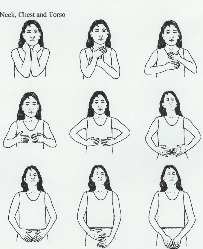 Op onderstaand plaatje zie je hoe je je zelf een Reiki behandeling geeft.